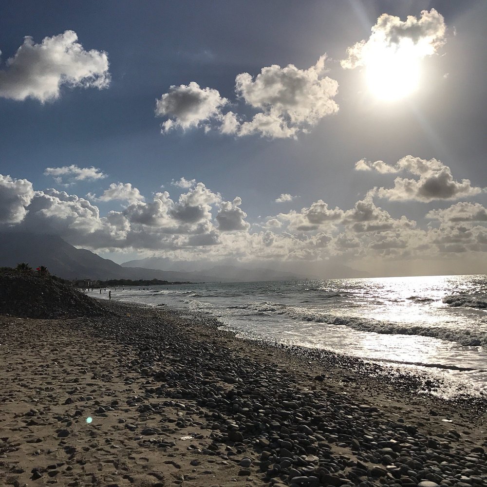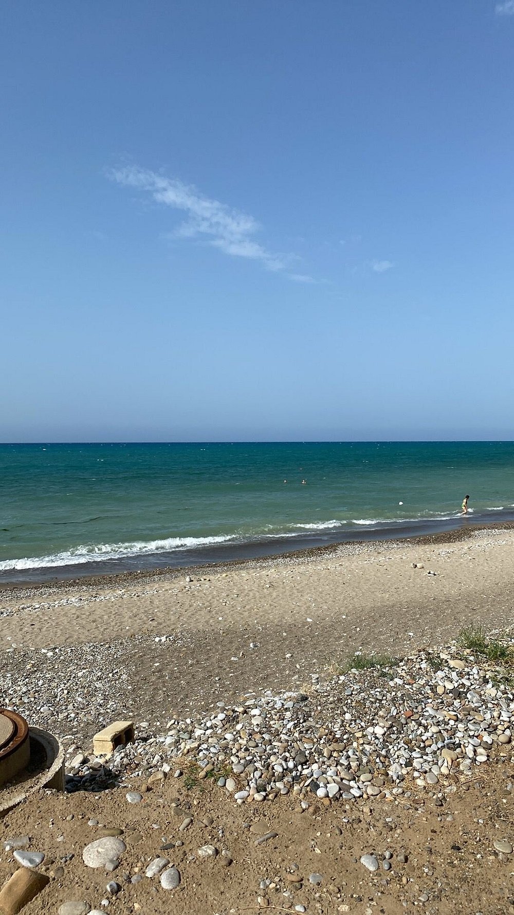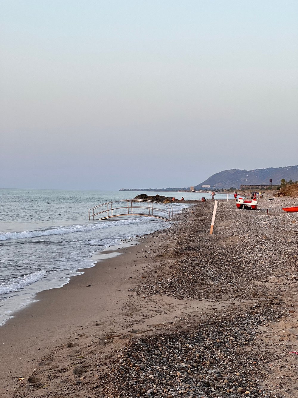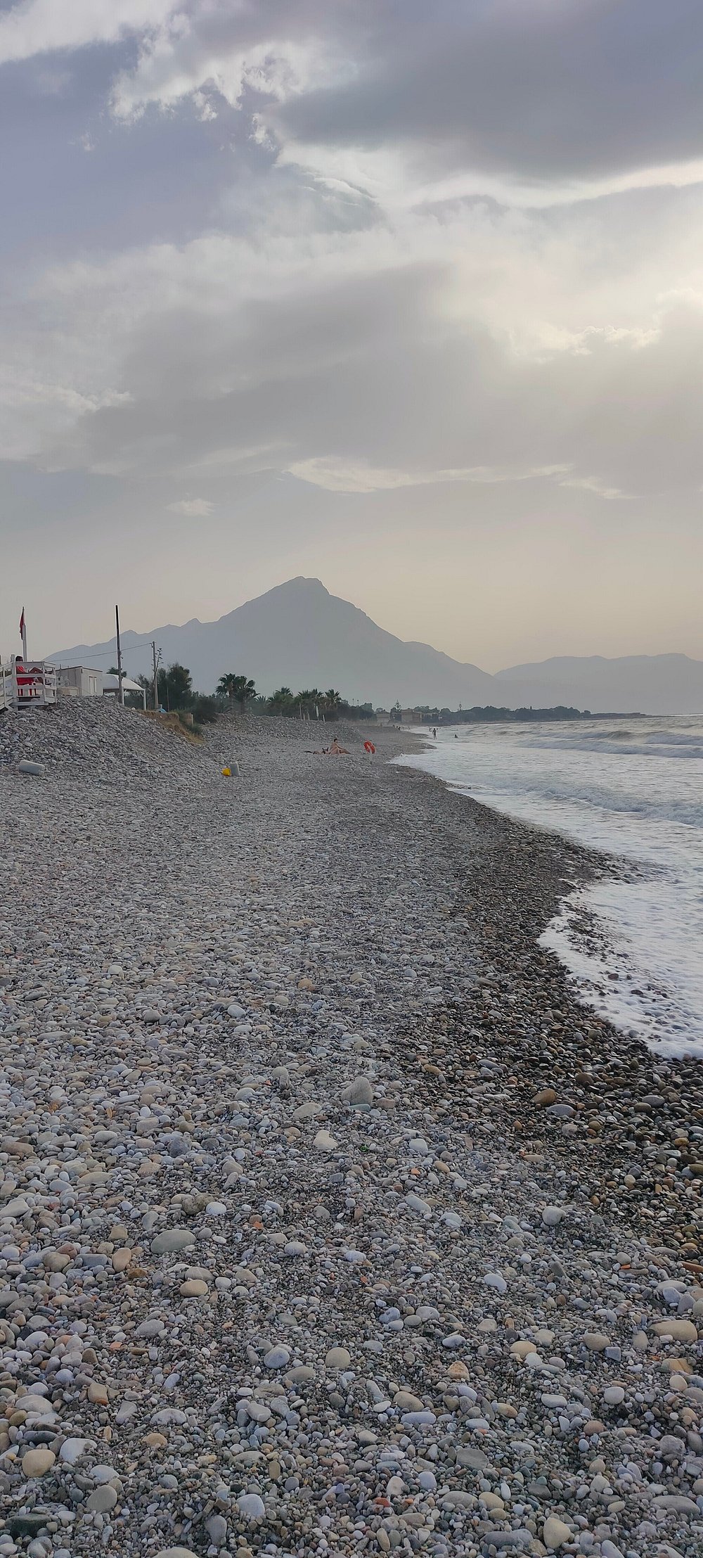 Zdjęcie przedstawia część wypoczynkową z widocznymi leżakami i parasolami, ale obecność osobistych rzeczy turysty dyskwalifikuje je z użycia marketingowego.