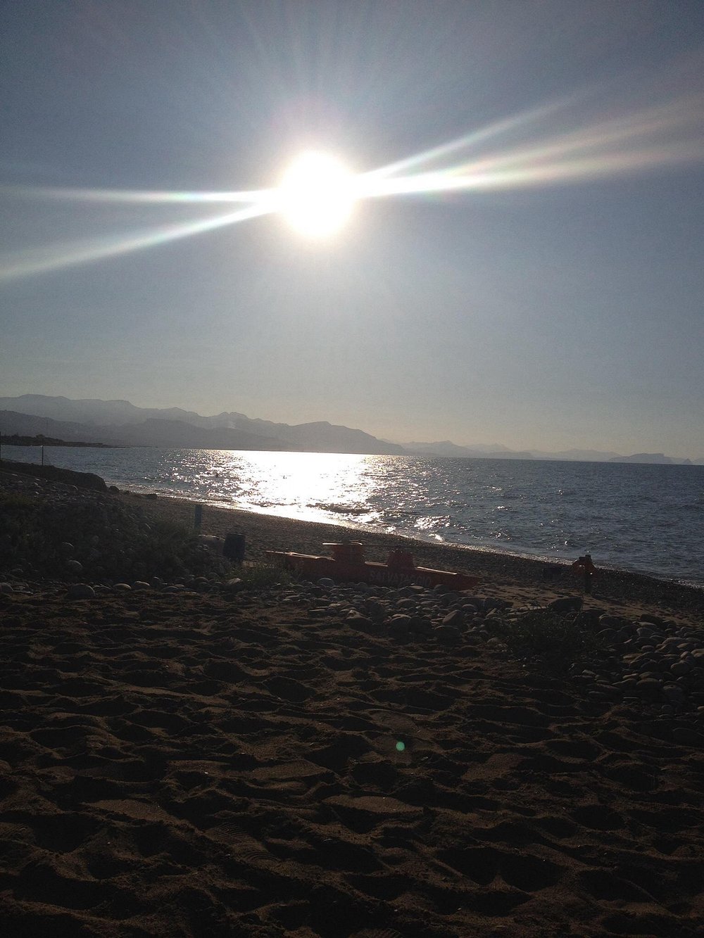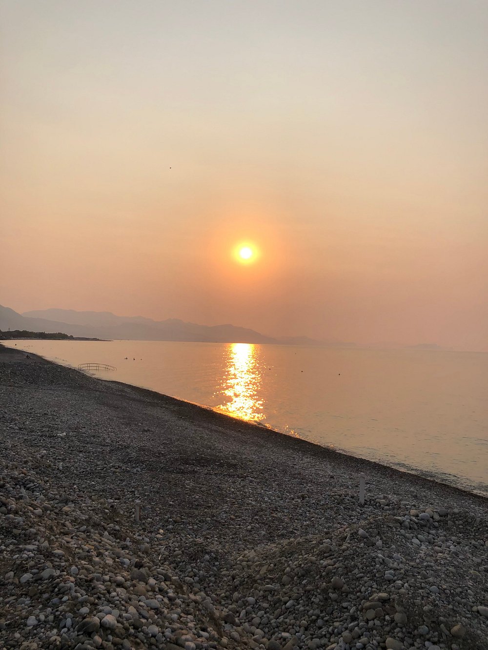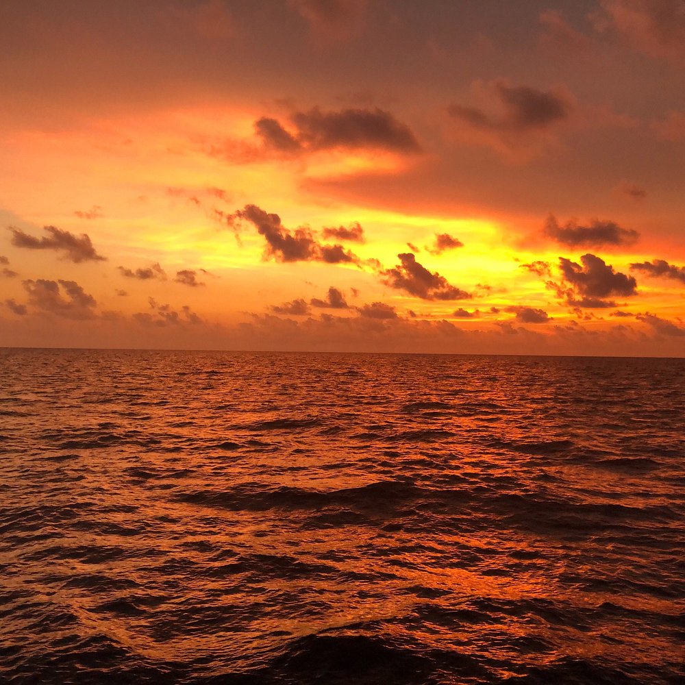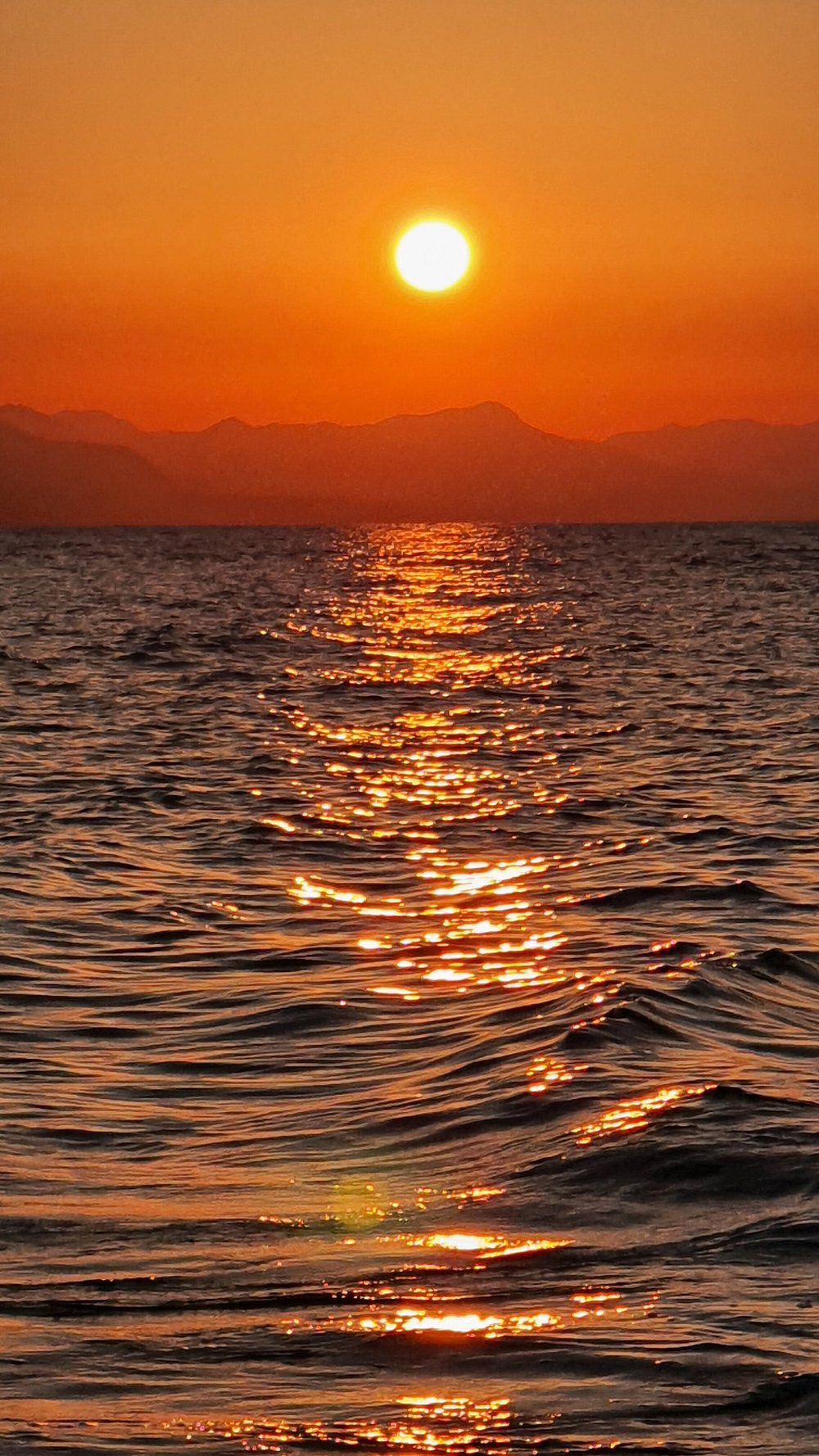 Spektakularny zachód słońca nad morzem z pomarańczowym niebem i odbiciem słońca na falach. Romantyczna atmosfera idealna na promocję lokalizacji turystycznej.