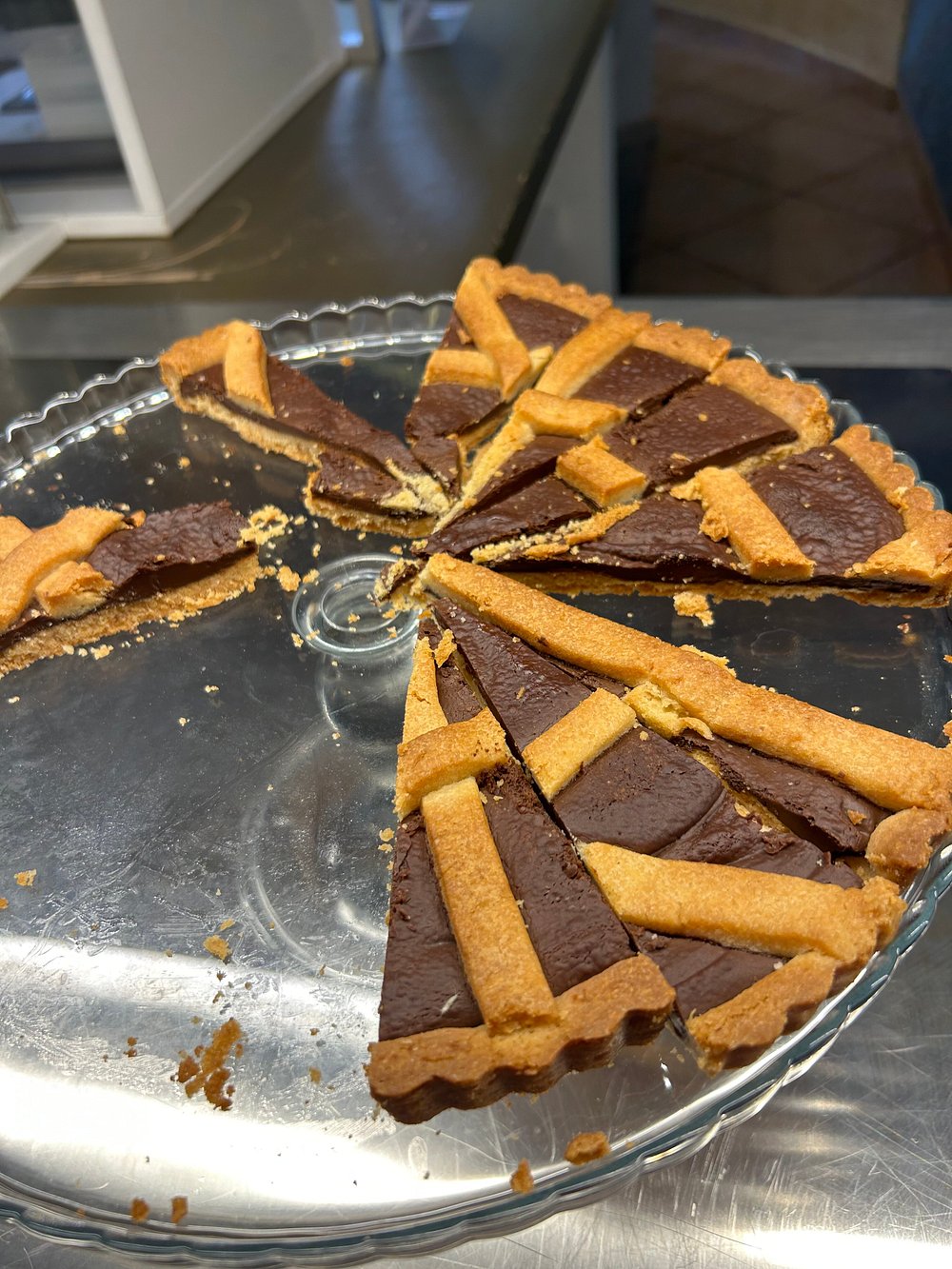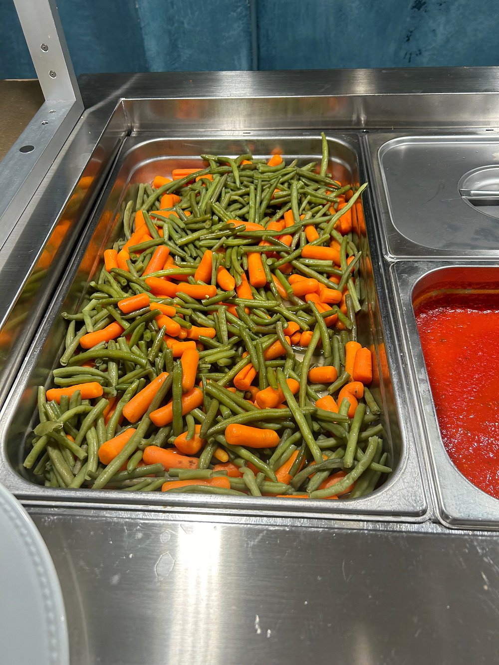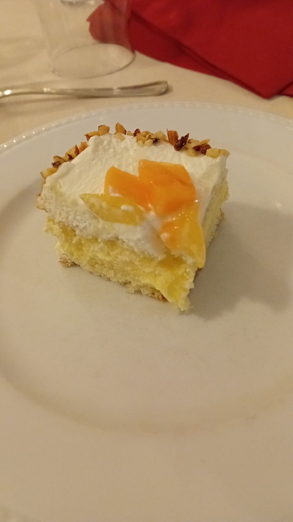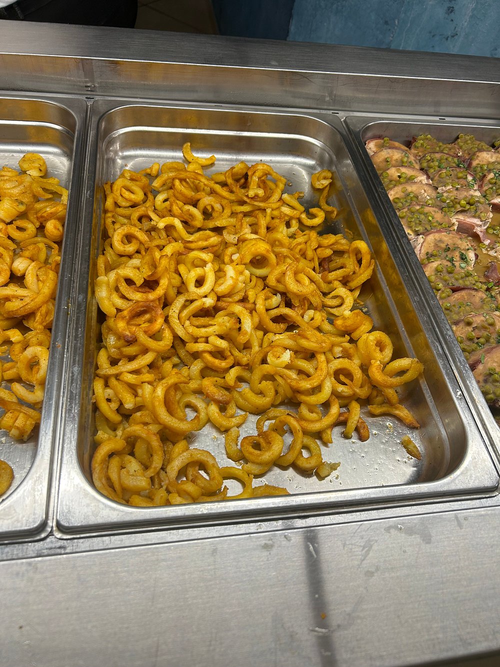 Danie z krewetką na eleganckim talerzu, jednak prezentacja jest nieco chaotyczna i nieestetyczna. Brak stylizacji i wyraźnego kontekstu sprawia, że nie przyciąga uwagi.